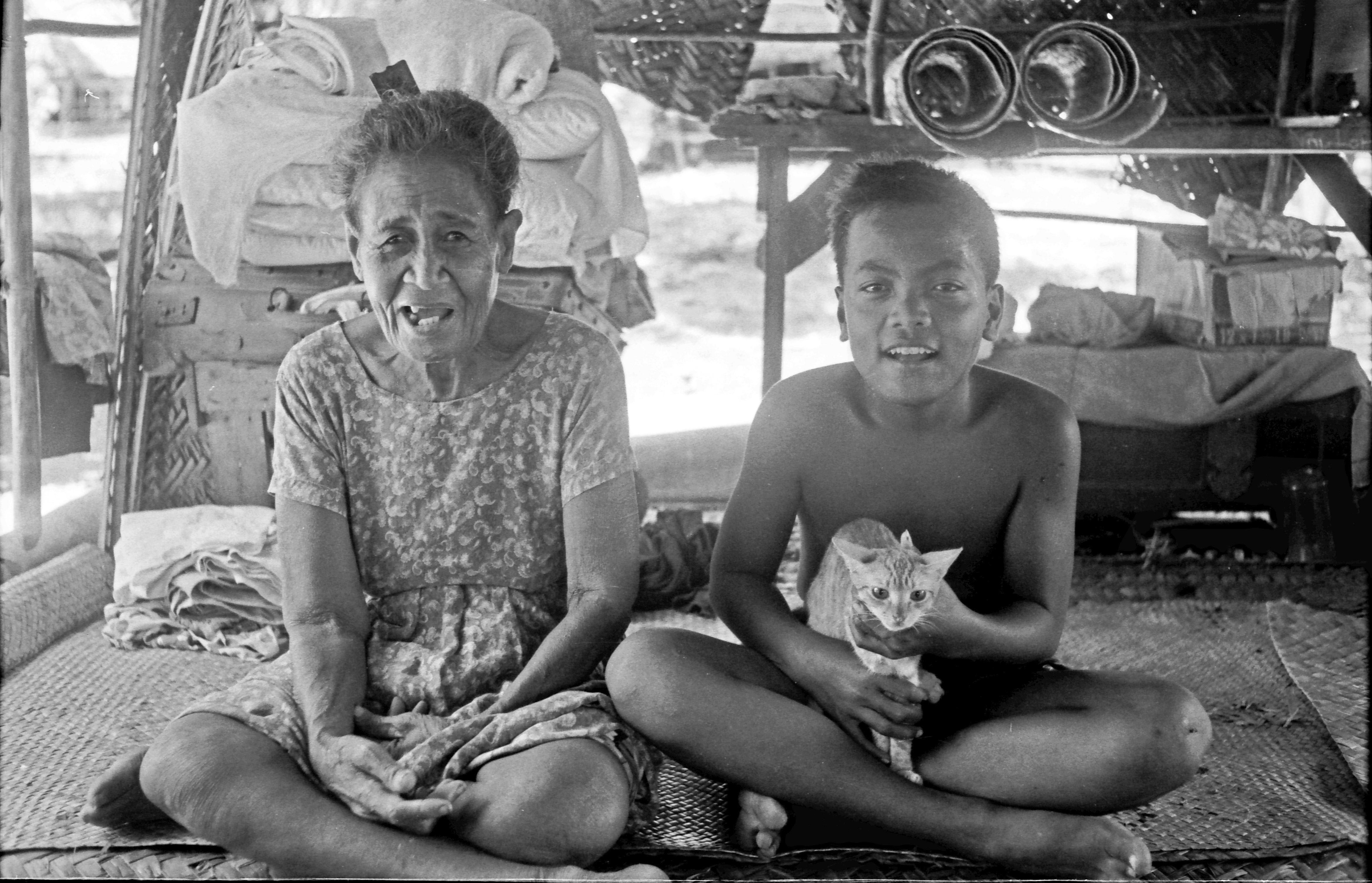 Sakana was born in 1931 in Nanumaga; her father was Maea of Nanumaga, her mother Haalotu of Nanumea. Sakanaa married Pinoka in Nanumea in 1956 and except for a period of some years in Nauru with her husband, lived her whole life in Nanumea. Sakana and Pinoka had six children: Anuanu, Teoti, Vaopua, Pulaka [Tilita], Teputi and Tapauli. They lived in Lolua i loto in 1973-74 and also in 1984. Sakana lives today (May 2020) in Nanumea with her daughter, Pulaka. and family. In the family picture here, Pulaka is the little girl at the left sitting in Pinoka's lap.