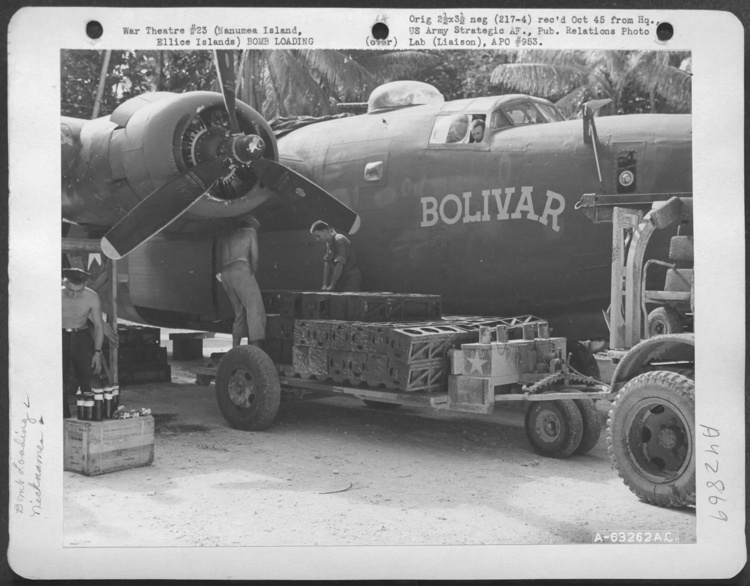 Loading bombs on the B-24 Liberator bomber “Bolivar”