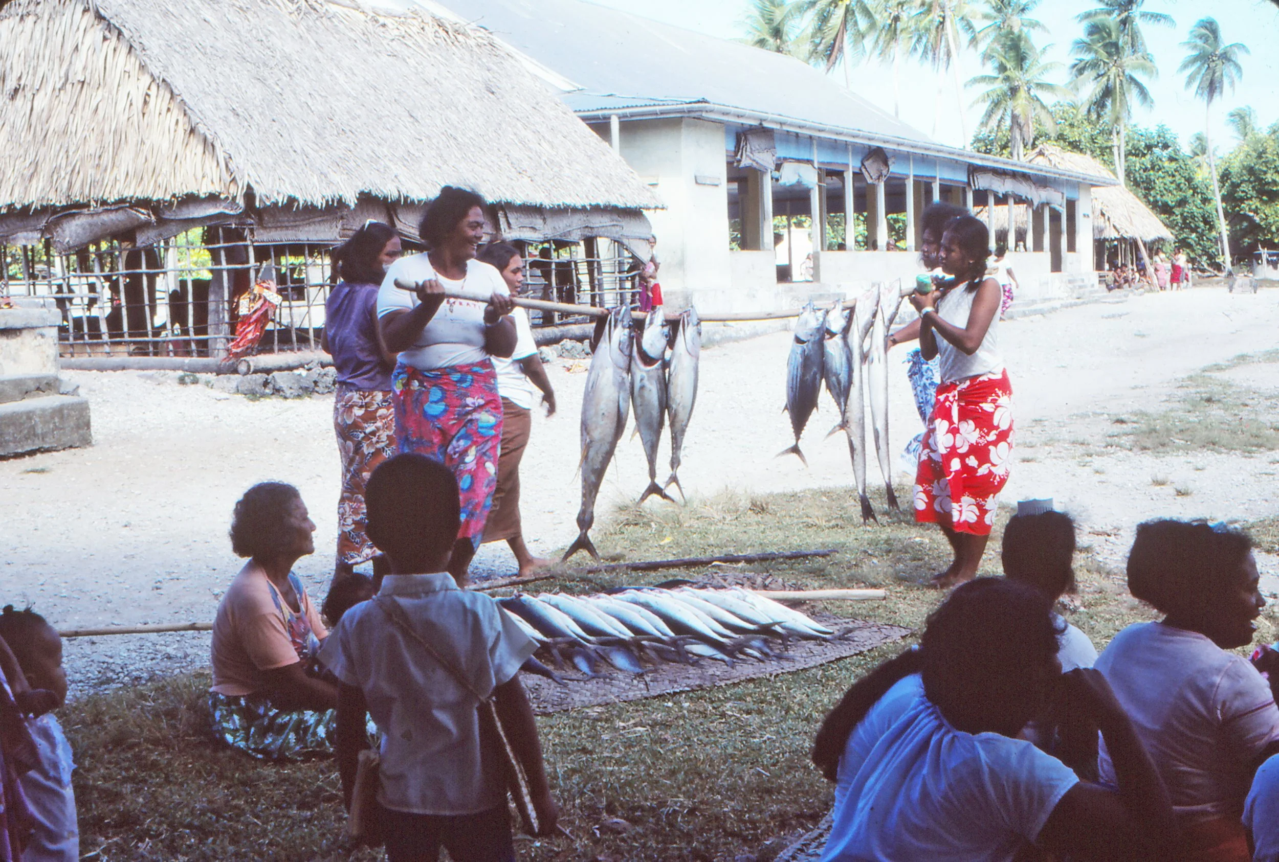 Fish donation to the Fenua after all-night fishing by the tamatane — January 1984