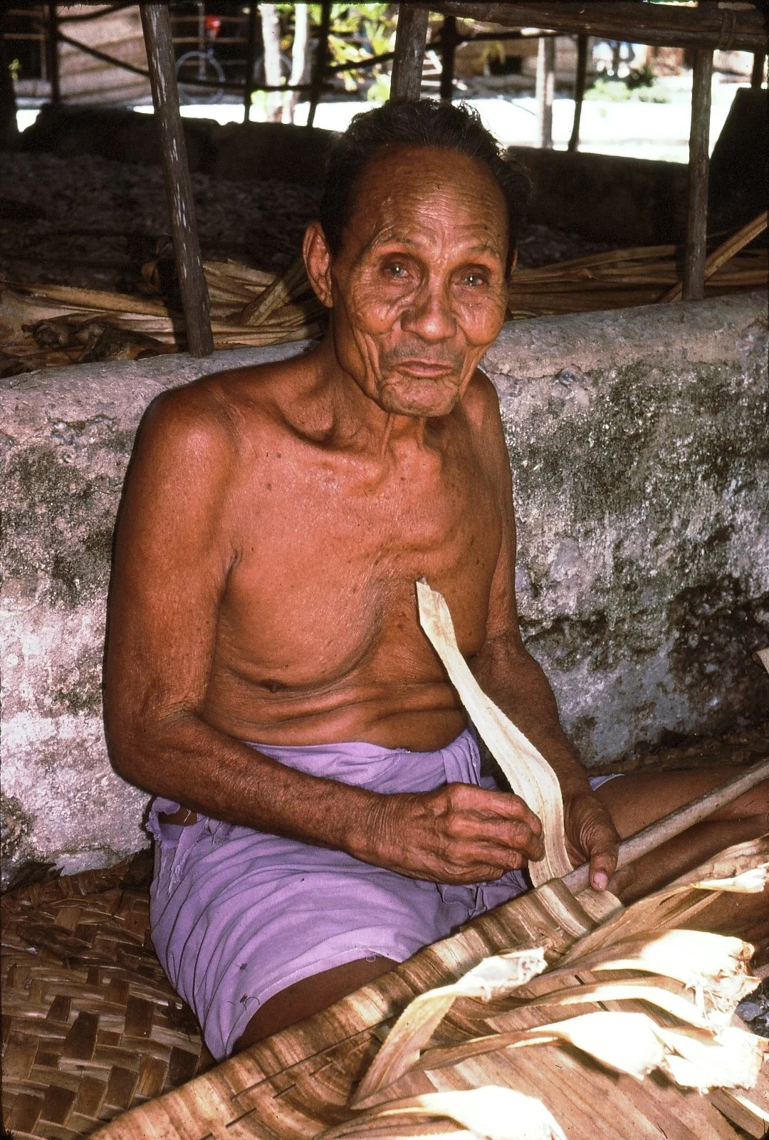 Tepou was a leading and respected elder in Nanumea in the 1970s and 1980s. He still fished actively in his small Nanumea style canoe, and was a knowledgeable fisherman.