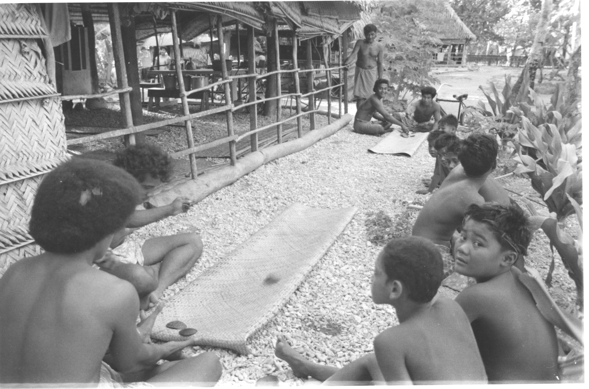 Dancing, June 1973. Watchers include Kueni, Ane, Salailoto, Falua, Lontona, Sunema and others.